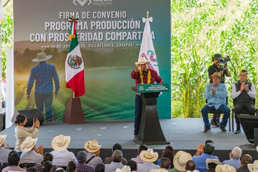 Villaflores; 14/ABRIL/2026.- En el municipio de Villaflores, el gobernador Eduardo Ramírez Aguilar firmó el Convenio de Coordinación entre el Gobierno de Chiapas y Acreimex, para la creación de un fondo de garantía líquida destinado al financiamiento de productoras y productores chiapanecos del sector primario, agroalimentario y agroindustrial, como parte del Programa Producción con Prosperidad Compartida. En este contexto, subrayó que el gobierno de la Nueva ERA impulsa políticas orientadas a detonar la productividad y el desarrollo rural en todo el estado.