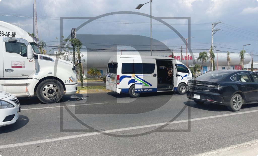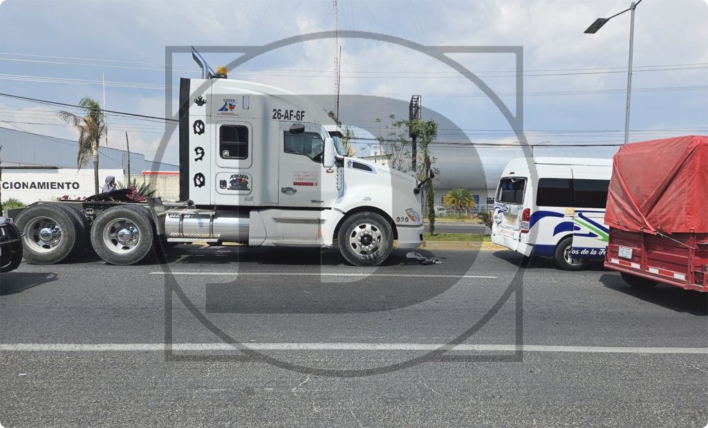 Choque entre tráiler y combi en el Boulevard de la Federación deja daños por miles de pesos.