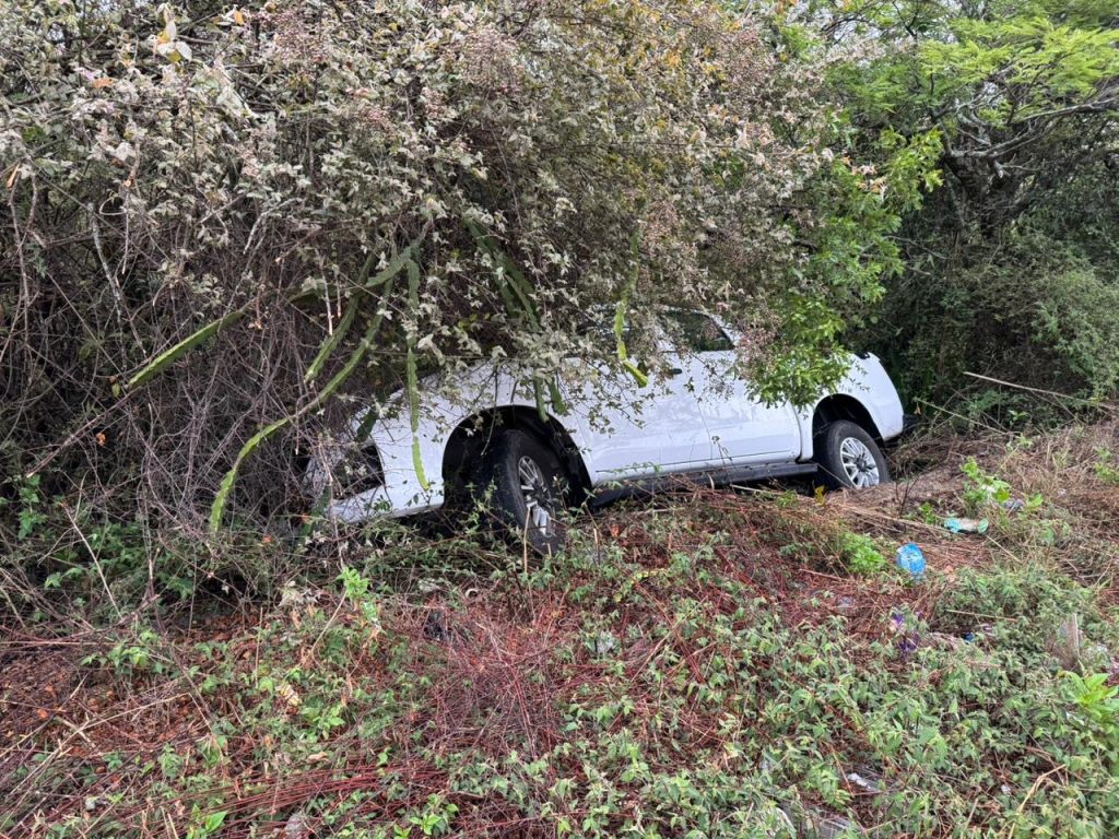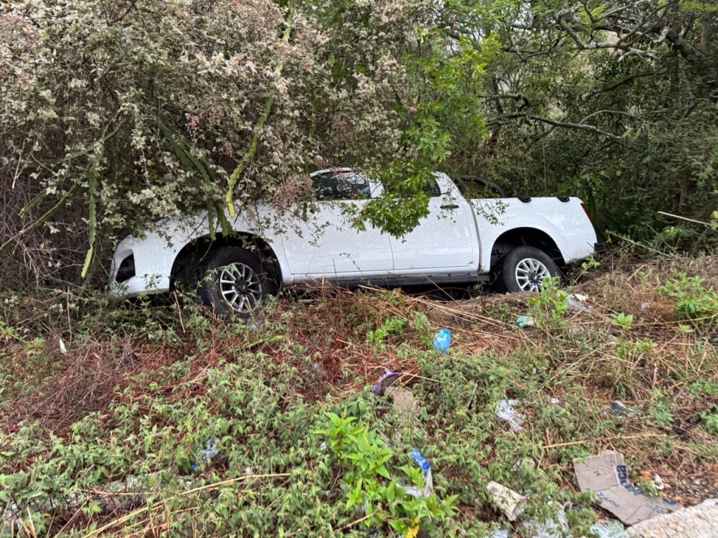 De acuerdo con los primeros reportes, el conductor de una camioneta tipo Frontier, de color blanco y modelo reciente, perdió el control de la unidad presuntamente debido al pavimento mojado, lo que provocó que terminara fuera de la cinta asfáltica.
