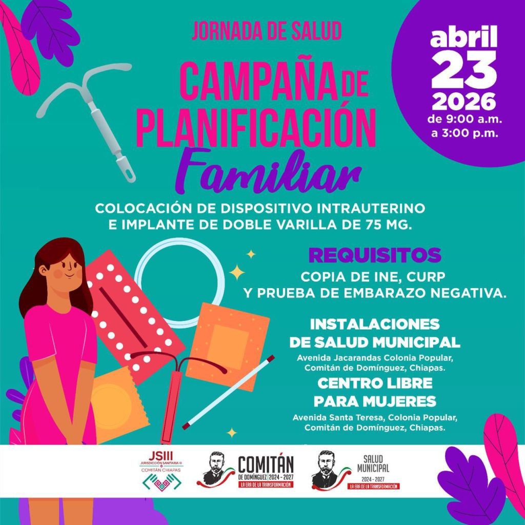 La Dirección de Salud Municipal en coordinación con la Jurisdicción Sanitaria III, llevará a cabo una campaña de planificación familiar.