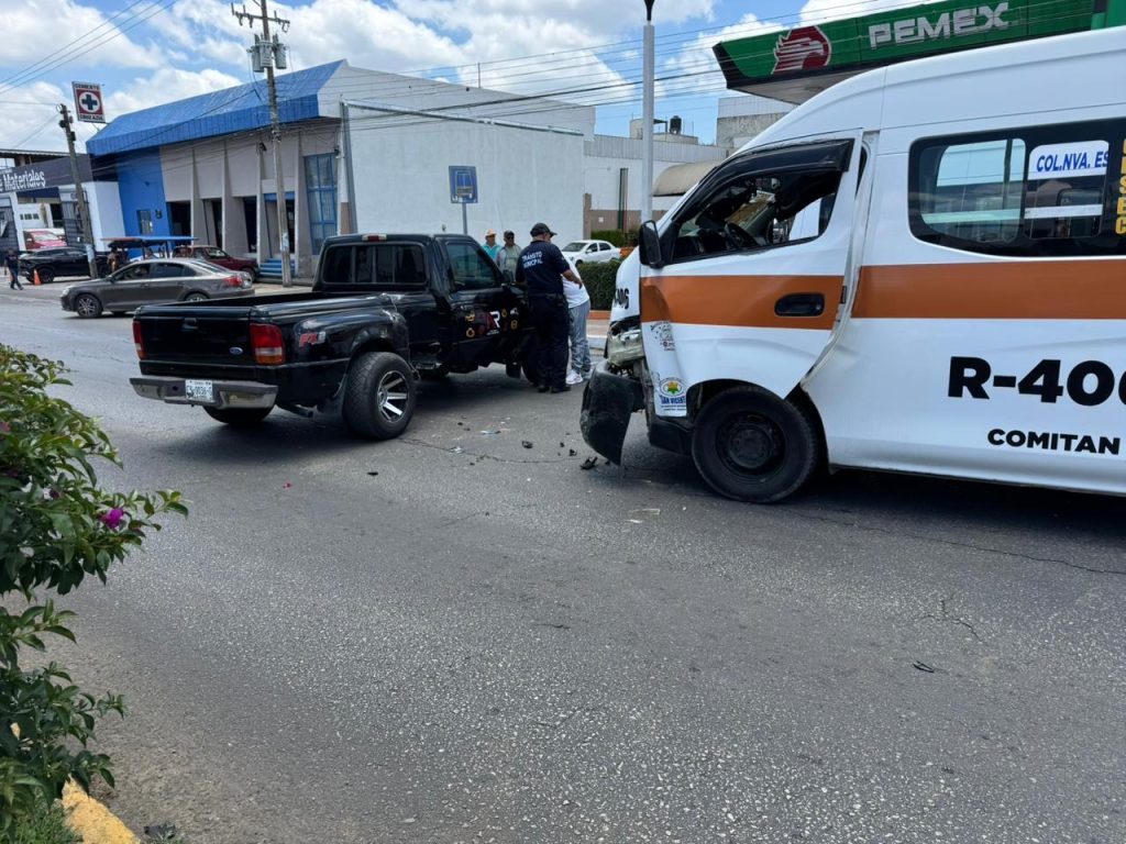En el percance se vieron involucrados tres vehículos: dos unidades del transporte público en modalidad de colectivo y una camioneta tipo Ford Ranger de color negro.