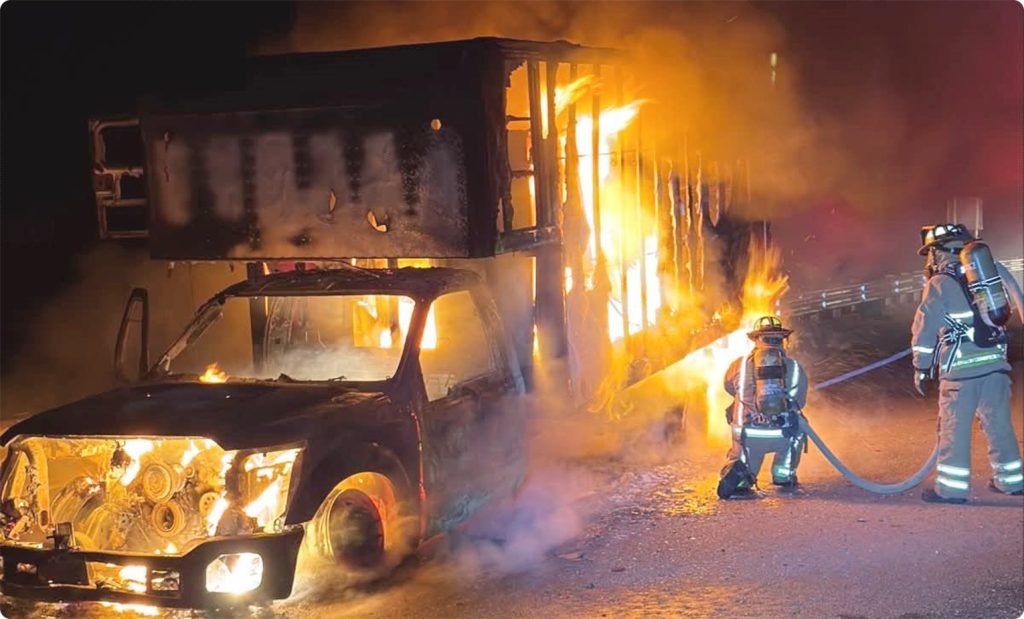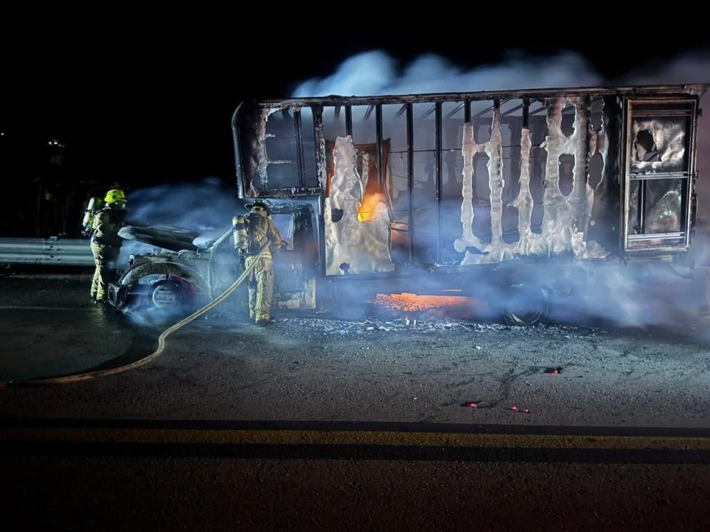 Tuxtla Gutiérrez; 22/ABRIL/2026.- La noche de este martes, un vehículo de carga fue consumido en su totalidad por un incendio mientras circulaba sobre la carretera de cuota que conecta San Cristóbal de Las Casas con Tuxtla Gutiérrez, a la altura del kilómetro 25+800.