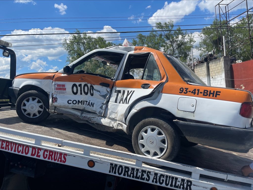 El percance sucedió a la altura del CBTis 108, en donde de acuerdo a testigos, la falta de precaución del conductor de un taxi Nissan tipo Tsuru, con número económico 0100, del sitio Radio Taxis Comitán, provocó que al tratar de tomar un retorno le cortará la circulación a una camioneta Nissan, de color gris.