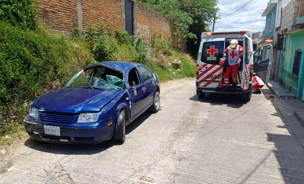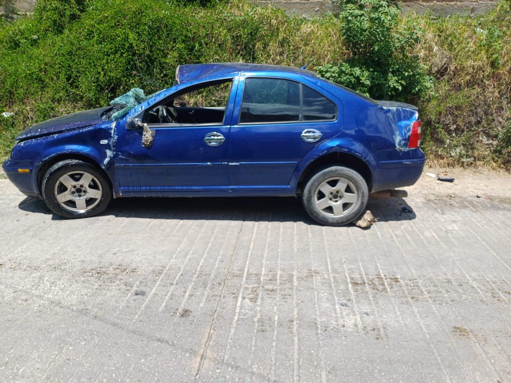 El accidente involucró a un automóvil Volkswagen Jetta de color azul, cuyo conductor perdió el control del vehículo presuntamente por una falla en el sistema de frenos. Según declaraciones del propio chofer, el desperfecto mecánico provocó que se impactara contra un montículo de tierra y finalmente terminara volcado sobre la vía.