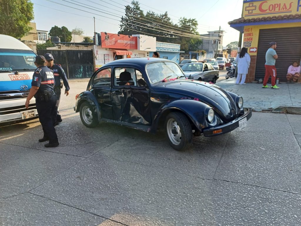En el percance estuvieron involucrados dos vehículos: una unidad del transporte público que cubre la ruta Comitán–Lagos de Montebello, y un automóvil particular tipo Volkswagen, color azul.