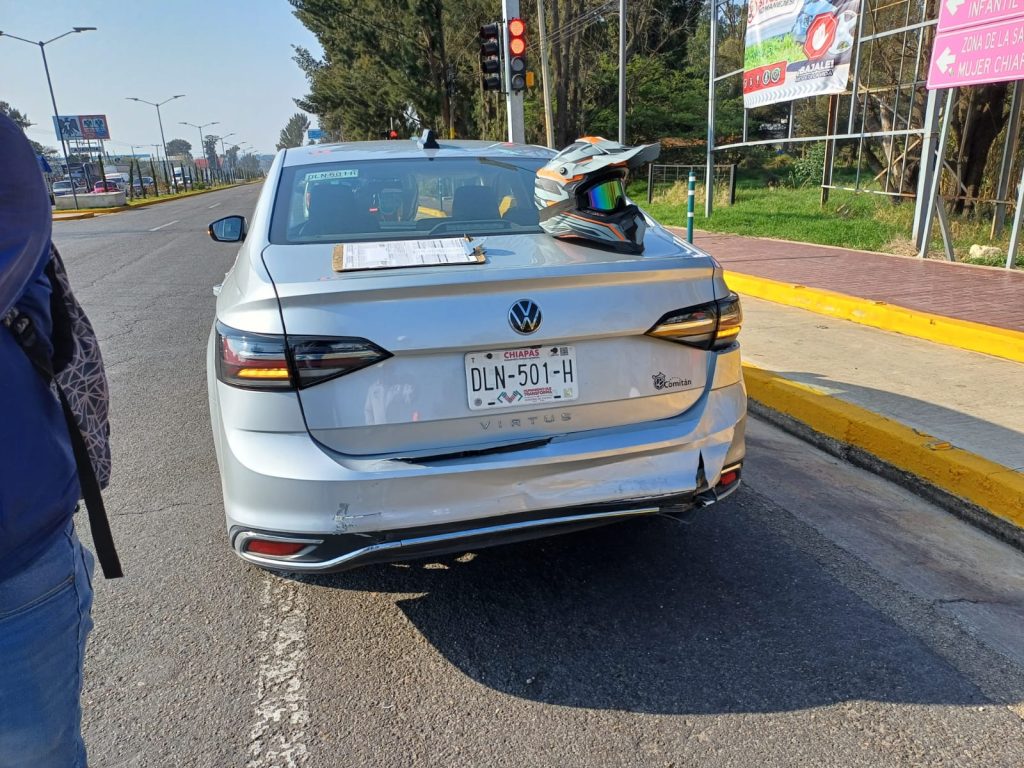 Aparatoso choque sin heridos en el semáforo de la Coca-Cola en el Boulevard de Las Federaciones en Comitán.