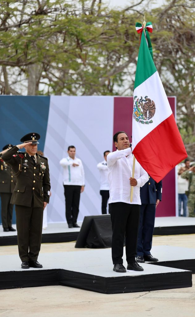 Tuxtla Gutiérrez, Chiapas; 24/02/2025.-En el marco del Día de la Bandera, el gobernador Eduardo Ramírez Aguilar encabezó el abanderamiento a escoltas de planteles escolares,en las instalaciones del 3er Regimiento de Artillería “El Sabino”. Durante el evento, destacó que, al igual que hace más de 200 años, las y los mexicanos siguen honrando el lábaro patrio, pues en él están plasmados los sueños y las ilusiones de millones de ciudadanas y ciudadanos.“Hoy celebramos un aniversario más de nuestro símbolo nacional, que nos da identidad,fuerza y espíritu libertario. Sus colores representan la trascendencia de nuestra historia,desde el mundo prehispánico hasta la actualidad, momentos en los que llevamos en el corazón a quienes nos han dado patria, libertad e independencia”, expresó el mandatario ante la presencia del comandante de la VII Región Militar, Alejandro Vargas González; el comandante de la Región Aérea del Sureste, Edgar Salvador Rodríguez Franco; el comandante de la 31 Zona Militar, Román Villalvazo Barrios, y el coordinador estatal de la Guardia Nacional en Chiapas, Antonio Hernández Tejeda.En ese contexto, Ramírez Aguilar reconoció a la primera mujer presidenta de México,Claudia Sheinbaum Pardo, resaltando que ella encarna los valores de patriotismo, lealtad y liderazgo para representar a la nación ante el mundo entero. Asimismo, señaló que esta ceremonia es también un homenaje al trabajo honesto y comprometido delas y los chiapanecos a favor de la construcción de la paz y el fortalecimiento de la República.Tras realizar el abanderamiento de escoltas pertenecientes a dos Centros de Atención Múltiple, dos escuelas de nivel preescolar, 59 primarias, 13 secundarias, dos telesecundarias y una escuela de multigrado, el gobernador expresó el orgullo de Chiapas por sus niñas y niños, a quienes llamó a seguir honrando la Bandera Nacional con respeto y compromiso, pues ellos y ellas representan el presente y el futuro dela patria.