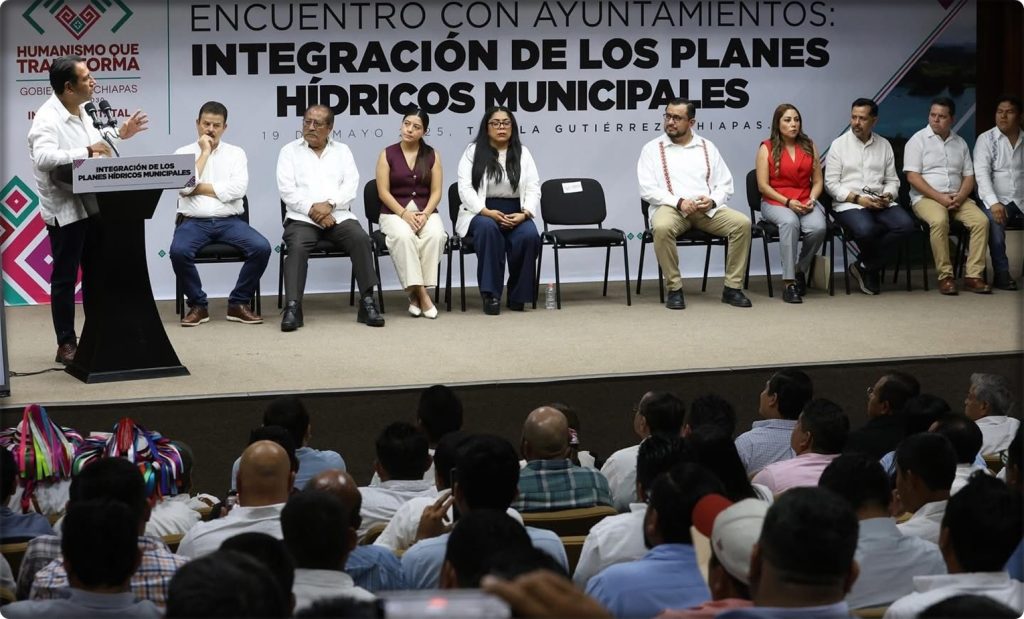 Ante presidentas y presidentes municipales, y las y los directores de obra pública y de organismos de agua potable de los ayuntamientos, el mandatario subrayó que Chiapas cumplirá con los objetivos del Plan Nacional Hídrico impulsado por la presidenta Claudia Sheinbaum Pardo, gracias al compromiso de su gobierno de atender de manera prioritaria las necesidades en esta materia, especialmente en los municipios con mayor rezago social.