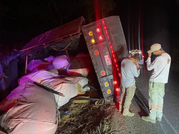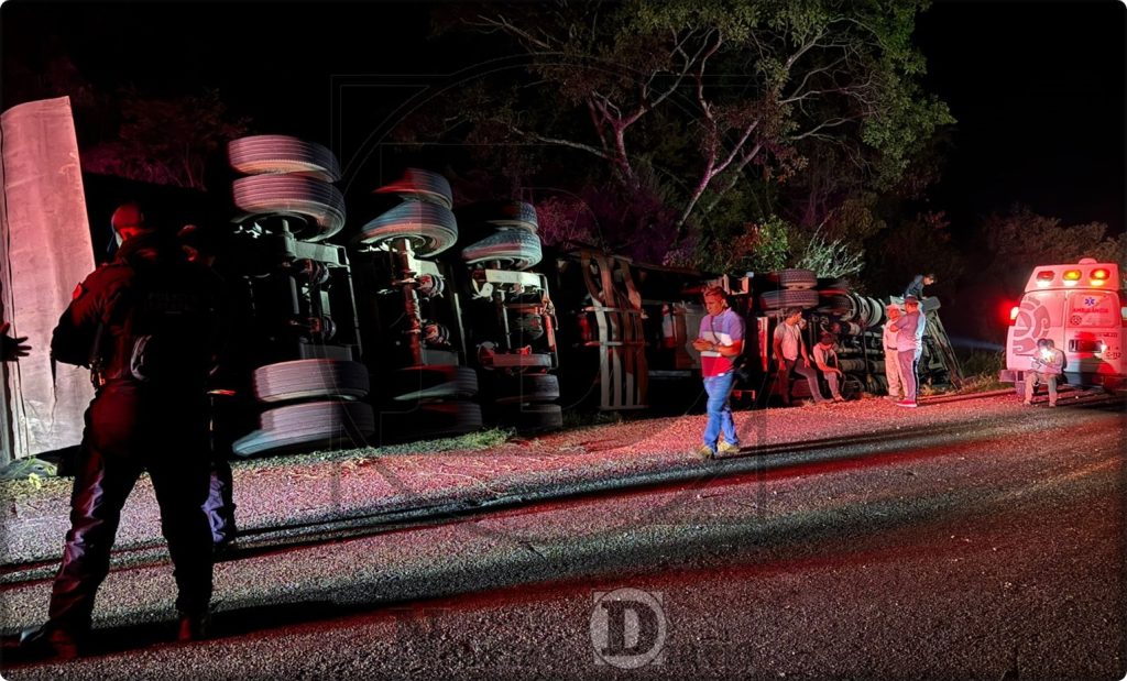 El conductor perdió el control en una curva; el exceso de carga habría provocado la volcadura.
