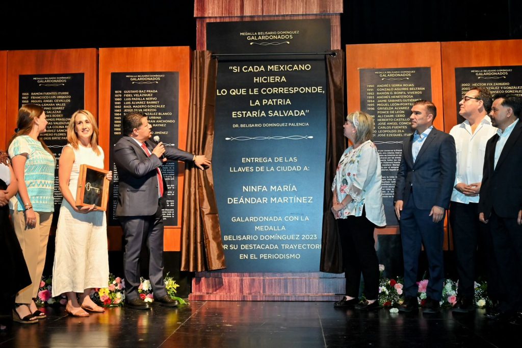 Entregan las llaves de la ciudad a Ninfa Deándar Martínez, medalla Belisario Domínguez 2023.