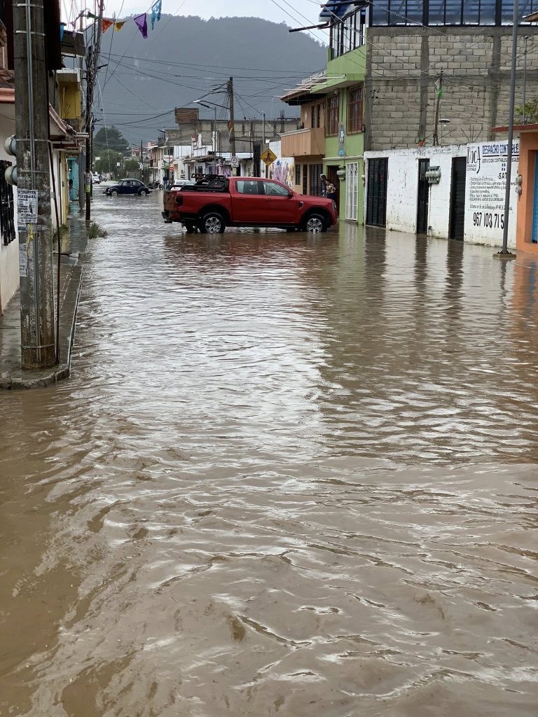 San Cristóbal de las Casas; 25/MAYO/2025.- Una intensa tormenta registrada la tarde de este domingo provocó severas inundaciones en diversas zonas de San Cristóbal de las Casas, dejando calles anegadas, vehículos varados y viviendas en riesgo por el ingreso de agua. Las autoridades locales se mantienen en alerta y continúan con labores de monitoreo y limpieza en puntos críticos de la ciudad.