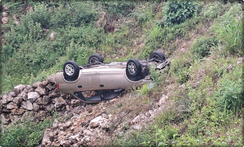 Comitán de Domínguez; 04/Junio/2025.- Un aparatoso accidente vehicular se registró en la carretera Comitán – Teopisca la tarde de este miércoles, luego de que un automóvil tipo Sedán cayera a un barranco de aproximadamente 15 metros de profundidad, a la altura de la ranchería Chacaljocom.