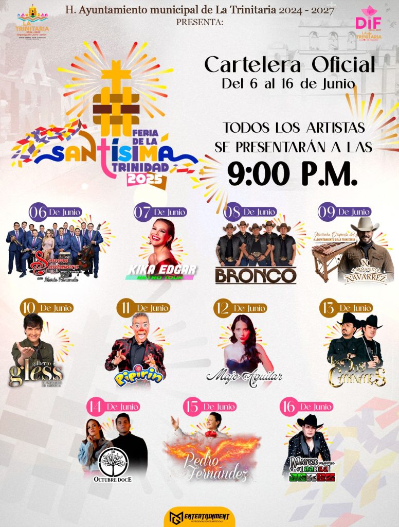 Te recordamos la cartelera preparada para la Feria de la Santísima Trinidad 2025, del 06 al 16 de junio.