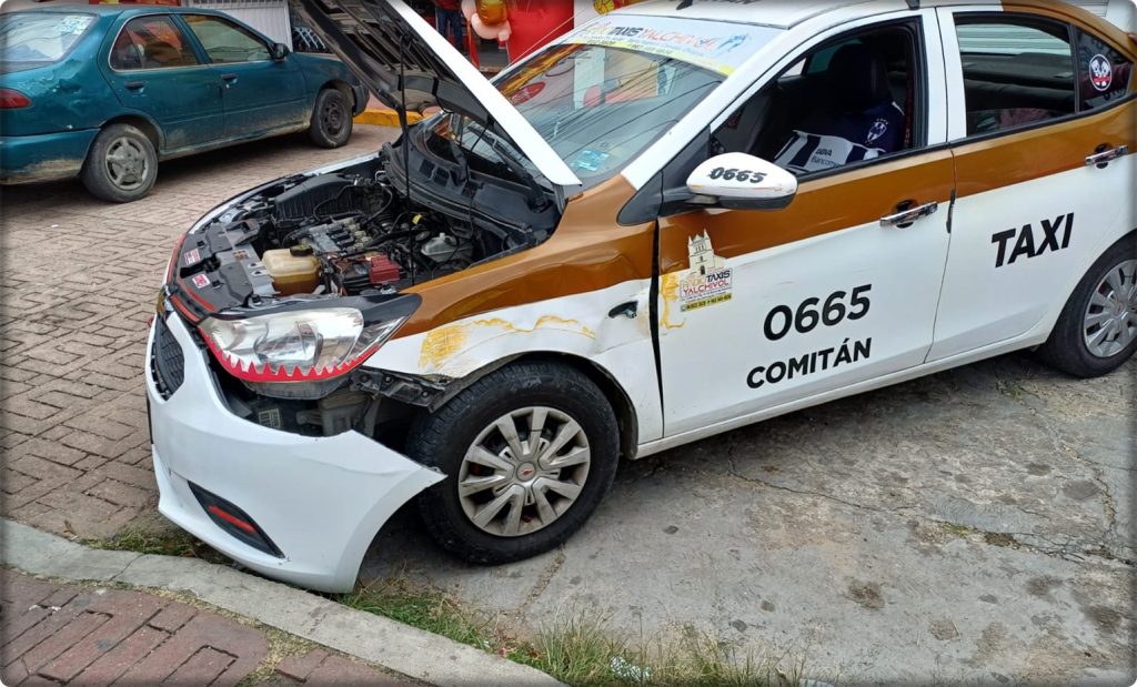 Comitán de Domínguez; 13/Junio/2025.- Un accidente de tránsito ocurrió este viernes frente a la Central de Abasto, sobre el bulevar “Belisario Domínguez”, lo que movilizó a elementos de Vialidad Municipal, luego de que una camioneta impactara a un taxi del servicio público.