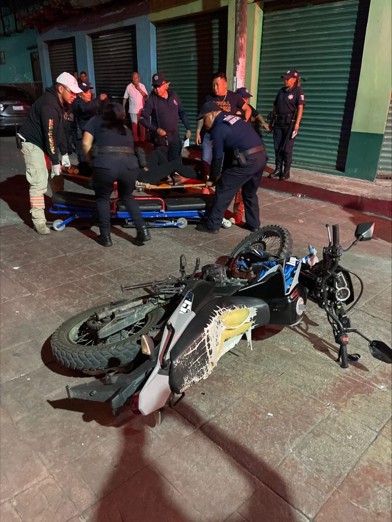 Al lugar arribaron, paramédicos de protección civil, quienes brindaron los primeros auxilios a los lesionados, de los cuales la mujer fue llevada de urgencia al hospital, ya que presentaba una probable fractura, lesión en la cabeza y heridas en el cuerpo, provocadas al no llevar ningún tipo de equipo de seguridad.
