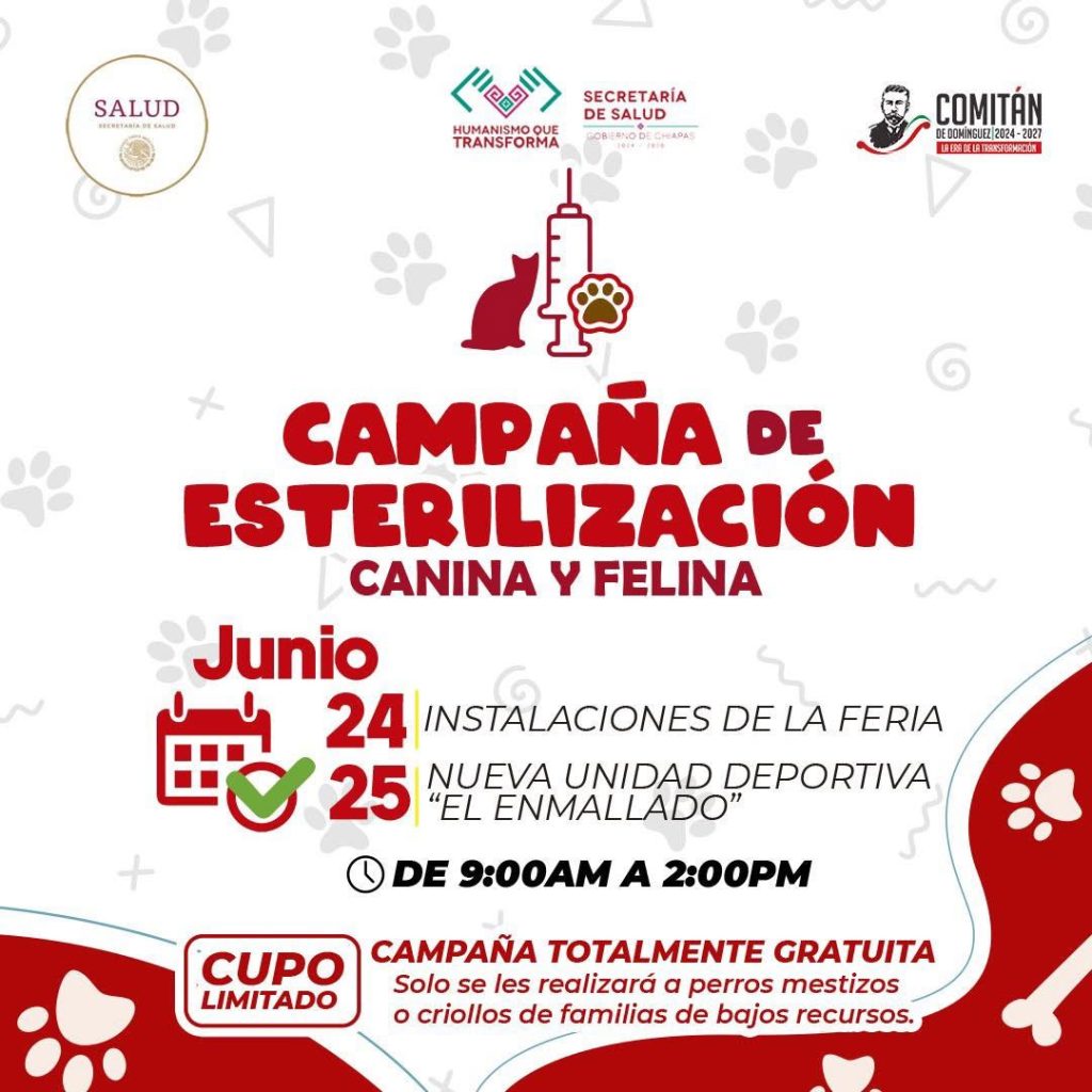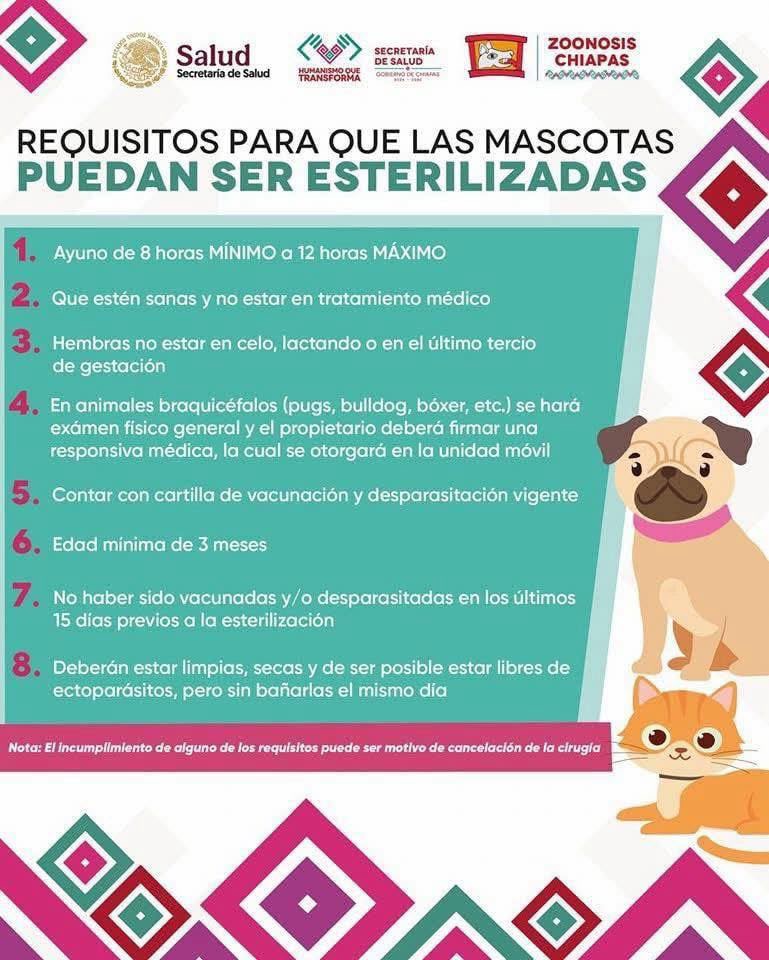 La Dirección de Salud Municipal a través del Centro de Control Canino en coordinación con la Jurisdicción Sanitaria III, llevará a cabo campaña gratuita de esterilización canina y felina.