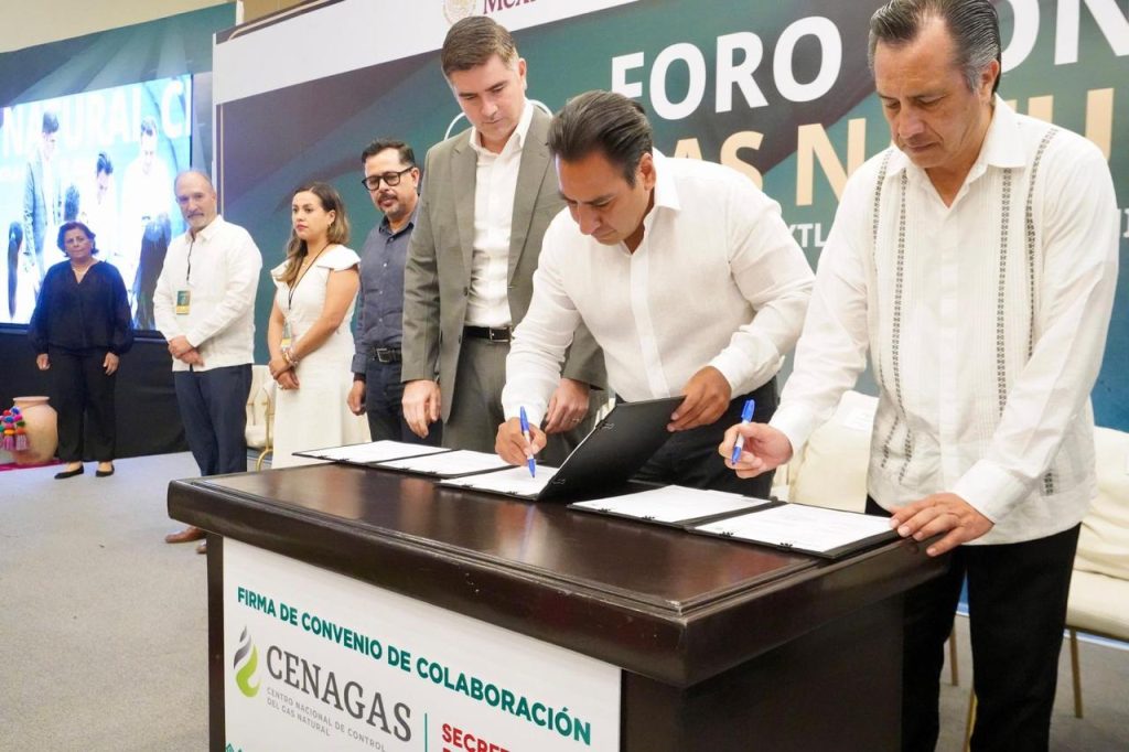Durante el evento, el mandatario atestiguó la firma de convenio entre el Cenagas y la Secretaría de Economía y del Trabajo (SEyT) del estado, y destacó que su administración respalda firmemente este gran proyecto, al representar una vía para detonar el desarrollo social, económico, productivo y comercial de Chiapas mediante la atracción de nuevas inversiones.