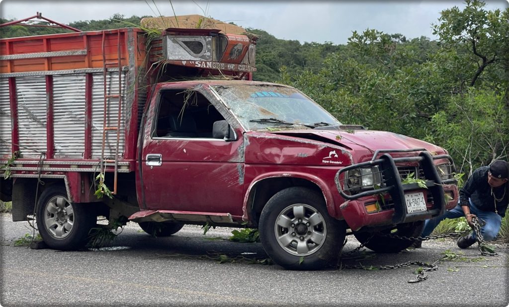 Los hechos ocurrieron a la altura del kilómetro 5, donde testigos relataron que una posible falla en la dirección de una camioneta Nissan tipo estaquita, color rojo, provocó que el conductor perdiera el control de la unidad al tomar una curva cerrada. La camioneta terminó completamente destrozada tras la caída.