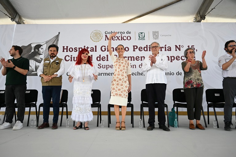 En este evento, acompañaron a la Jefa del Poder Ejecutivo: el secretario de Salud, David Kershenobich Stalnikowitz; el director general de IMSS Bienestar, Alejandro Svarch Pérez; la subsecretaria de Egresos de la Secretaría de Hacienda y Crédito Público (SHCP), Bertha Gómez Castro; el subsecretario de Integración Sectorial y Coordinación de Servicios de Atención Médica, Eduardo Clark García Dobarganes; el subsecretario de Bienestar, Jesús Valencia Guzmán; el director general de Birmex, Carlos Alberto Ulloa Pérez; la titular del IMSS en Campeche y encargada del Hospital de Gineco Pediatría N°15, Irene Rodríguez Melo; y el presidente municipal de Ciudad del Carmen, Pablo Gutiérrez Lazarus.