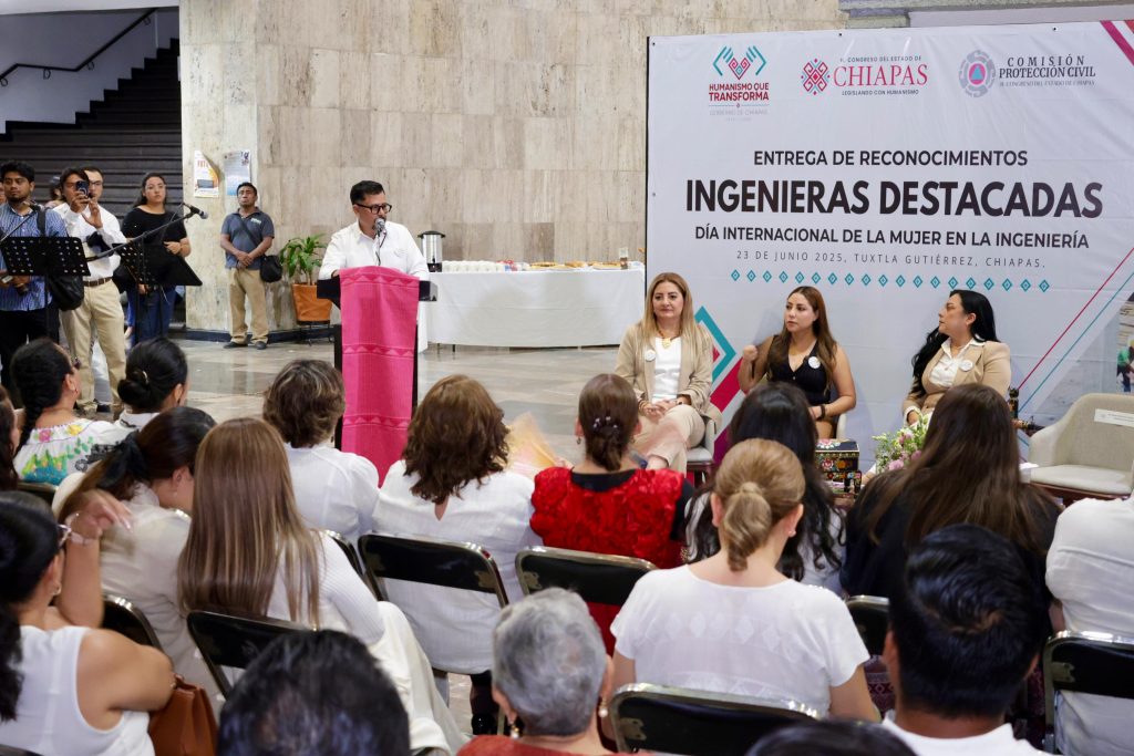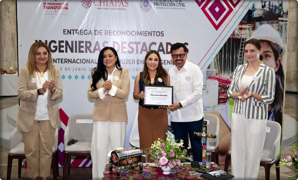 Tuxtla Gutiérrez; 23/Junio/2025.- El Congreso del Estado, en el marco del Día Internacional de la Mujer en la Ingeniería, entregó reconocimientos a: Bárbara Adriana Rodríguez Bucio, Ruth Cristina Morales Hernández, Minerva Gamboa Sánchez y Griselda Aguirre Medina, por su destacada trayectoria y por su trabajo a favor del desarrollo tecnológico y académico de Chiapas.