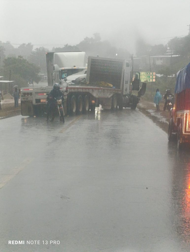 Teopisca, Chiapas; 28/JUNIO/2025.- Hace unos momentos se registró un fuerte accidente donde dos trailers se dieron de frente, Este accidente se registró antes de llegar a teopisca por la conocida campana.