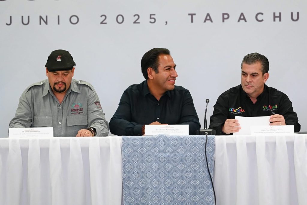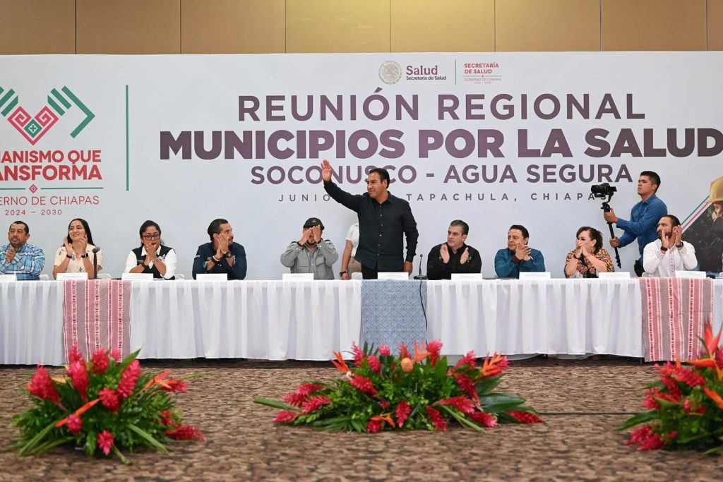 Tapachula, Chiapas; 29/JUNIO/2025– En el marco de la Reunión Regional de Municipios por la Salud “Soconusco, Agua Segura”, el gobernador del estado de Chiapas, Eduardo Ramírez Aguilar, reafirmó su compromiso con el fortalecimiento del acceso al agua potable y el saneamiento en la región, alineado con el Plan Hídrico Nacional que impulsa la presidenta de México, Claudia Sheinbaum Pardo.