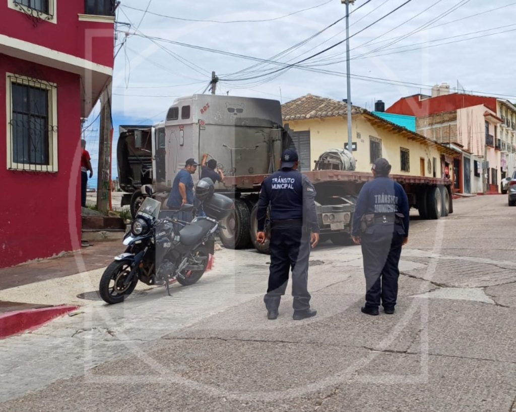 De acuerdo con versiones preliminares, el conductor del tráiler habría fallado en el cálculo al intentar girar en una intersección estrecha, lo que provocó que la pesada unidad quedara atravesada en ambos sentidos de la vía.