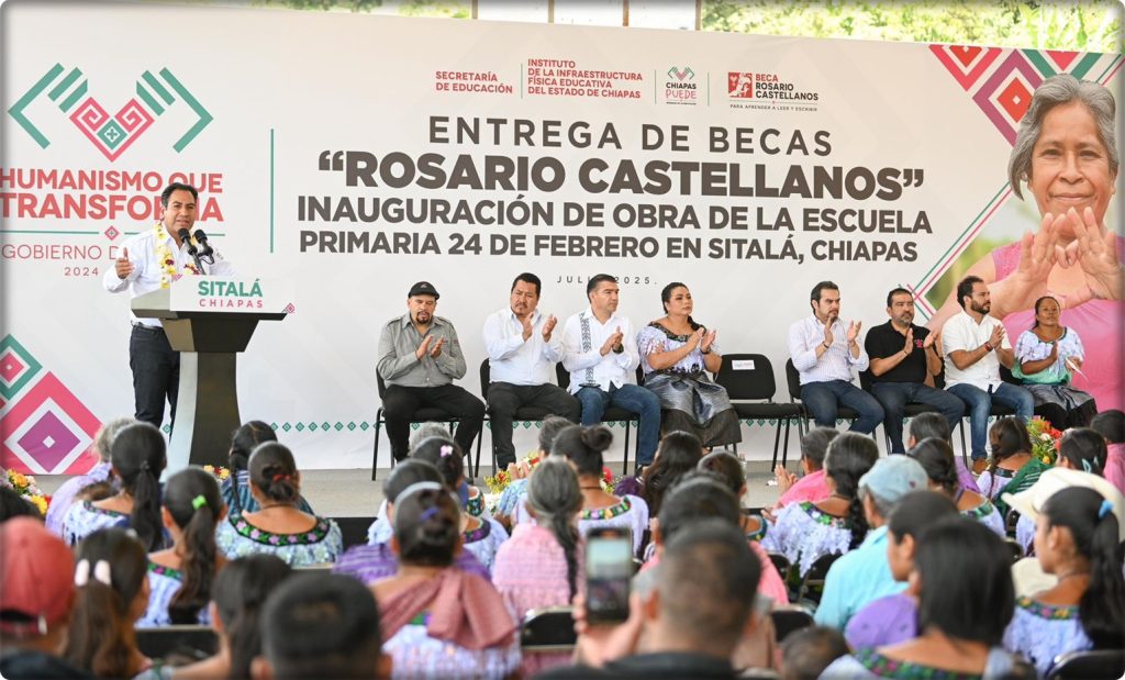En esta ocasión, el mandatario entregó becas Rosario Castellanos a personas inscritas en el programa de alfabetización Chiapas Puede, subrayando que el aprendizaje de la lectura y la escritura es clave para transformar la realidad de las comunidades.