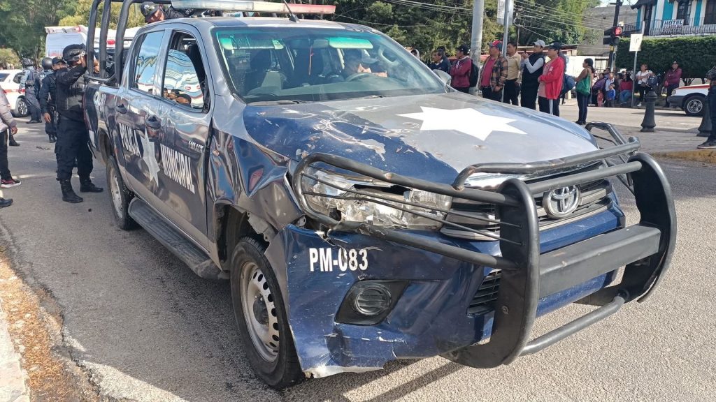 San Cristóbal de Las Casas, Chiapas.- 21/julio/2025. Una patrulla de la Policía Municipal presuntamente conducida por elementos en estado de ebriedad provocó un aparatoso accidente la tarde de este lunes en el boulevard Juan Sabines, a la altura de la agencia Chevrolet.