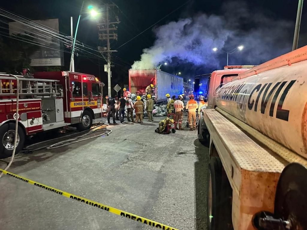Tuxtla Gutiérrez, Chiapas; 29/JULIO/2025.– La tarde de este lunes, un tráiler cargado con carbón se incendió mientras circulaba sobre la Carretera Panamericana, a la altura de la colonia Plan de Ayala, entre las calles Buenos Aires y Barbasco.