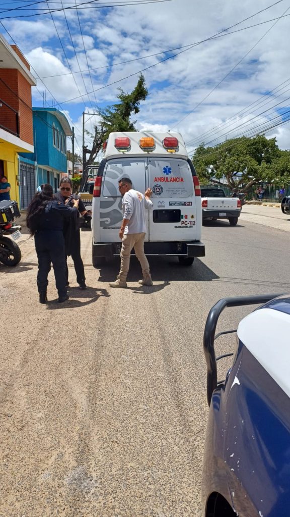 La motocicleta se impactó violentamente contra la puerta del conductor, lo que ocasionó que ambos tripulantes salieran proyectados. Uno de ellos resultó con una lesión considerable en la pierna derecha, por lo que fue atendido por paramédicos de Protección Civil y trasladado de inmediato al Hospital General para su valoración médica.