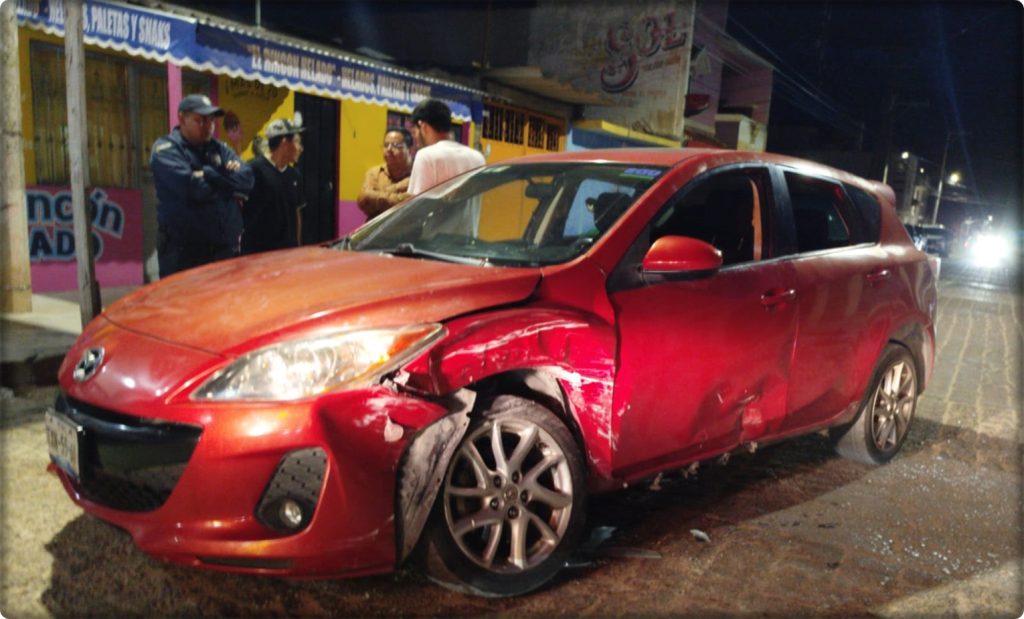 De acuerdo con testigos en el lugar, el conductor de un vehículo tipo Sedán, quien presuntamente circulaba a exceso de velocidad tras salir de la feria instalada en la zona, impactó de manera frontal contra una camioneta marca Mazda, color guinda, que transitaba sobre la Avenida 12 de Octubre.