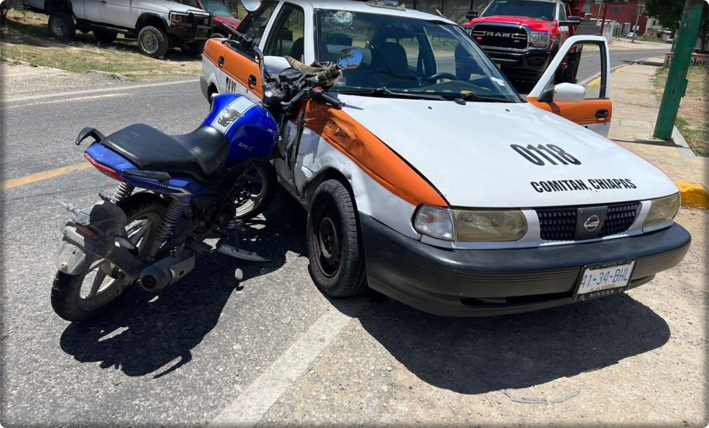 Joven lesionado tras aparatoso choque entre taxi y motocicleta en Comitán.