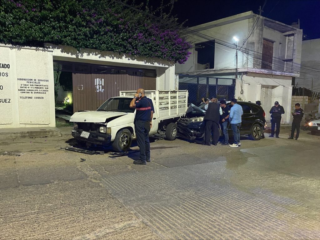El percance ocurrió sobre la tercera calle sur, entre cuarta y quinta avenida poniente, cuando el conductor de una camioneta Honda, presuntamente en estado de ebriedad, perdió el control del volante e impactó contra una camioneta Nissan tipo Estaquitas.