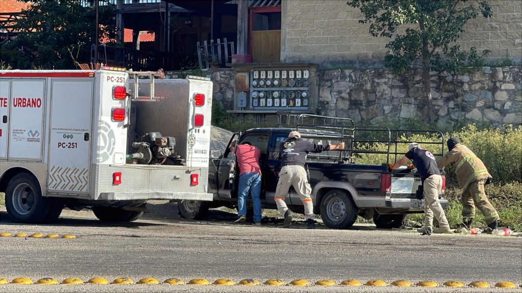 Los hechos sucedieron a la altura de la ranchería Quija, en donde un corto en la instalación eléctrica de una camioneta marca Ford tipo Ranger, de color gris, provocó que la unidad comenzar a incendiarse.