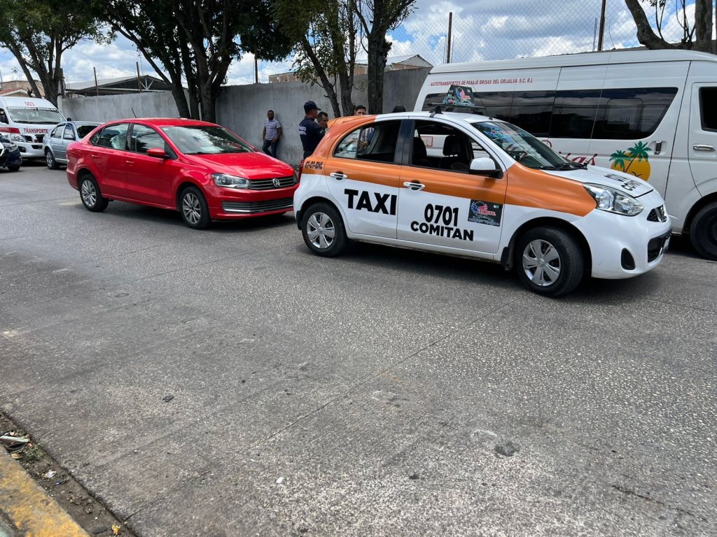 Comitán, Chiapas; 20/AGOSTO/2025.- Hace unos momentos se registró un choque por alcance en el Eje Vial, donde un taxi con número económico 0701 resultó con daños en la parte trasera tras ser impactado por un vehículo particular.